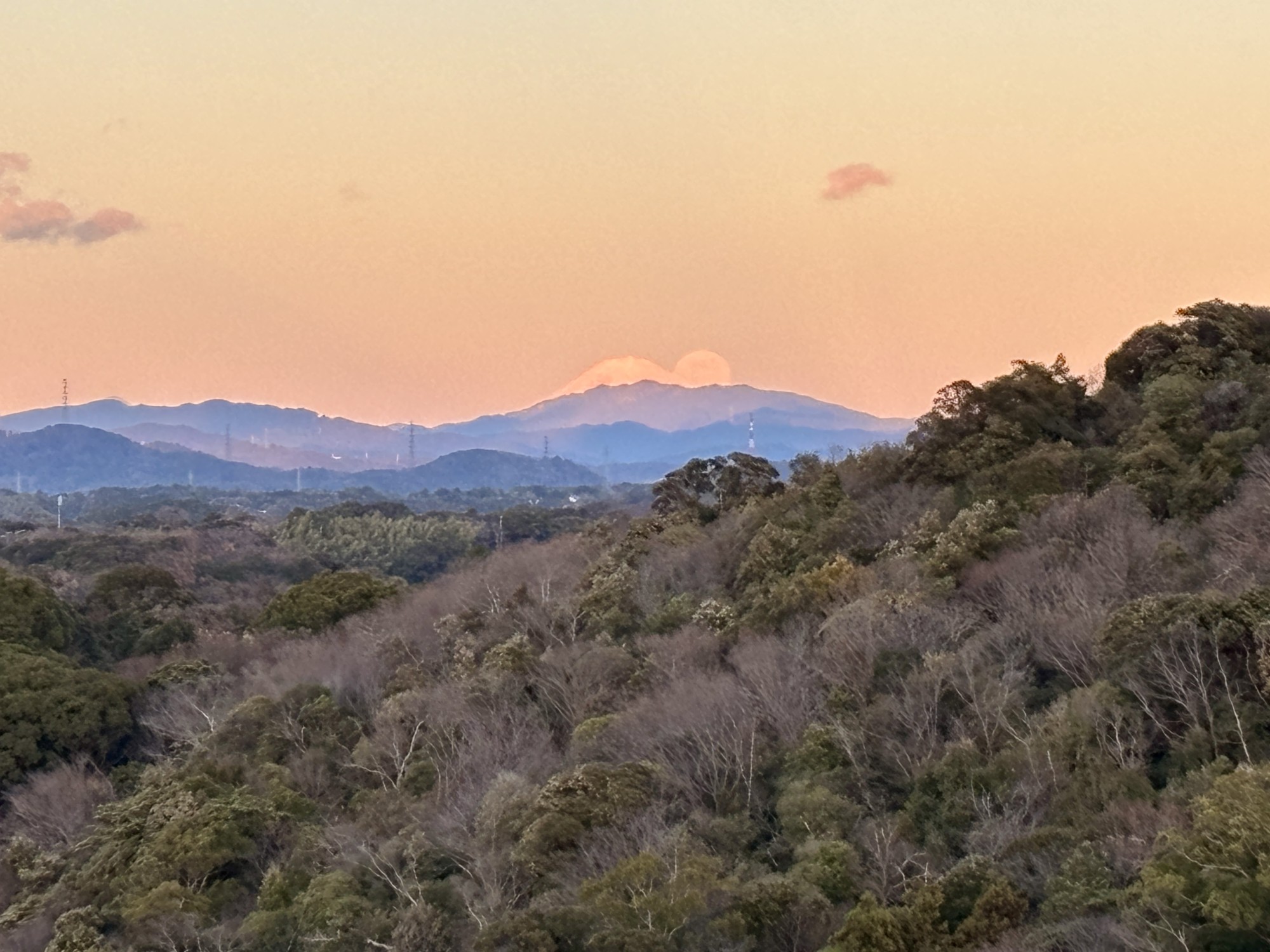 毎年お正月にここへ登って、頭だけちょこんと見える富士山を拝んで手を合わせます。